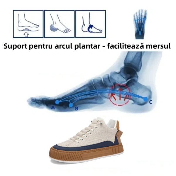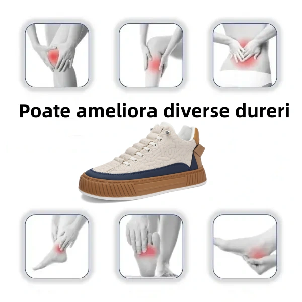 Acești pantofi nu numai că reduc stresul asupra articulațiilor, ci ajută și la întărirea și tonifierea mușchilor și îmbunătățirea posturii. Acești pantofi oferă suport complet și flexibilitate pentru a îmbunătăți echilibrul sub picioare și oferă confort pe tot parcursul zilei, astfel încât să puteți merge cu ușurință și încredere.