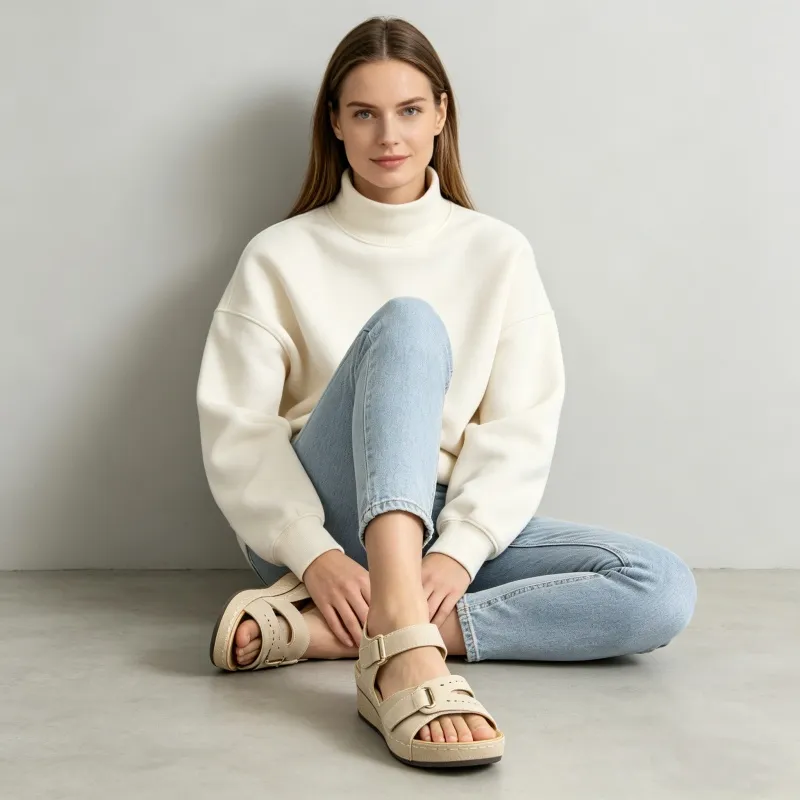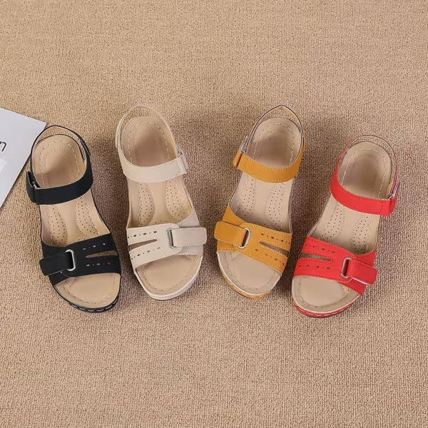 🔥 Sandale ortopedice de vară pentru femei — Sandale cu platformă, confecționate din piele ecologică, cu suport pentru arcul plantar și curele reglabile cu velcro pentru confort la mers pe tot parcursul zilei — spune adio durerilor de picioare! ✅